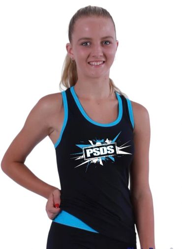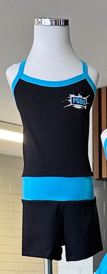 Black Body, Aqua supplex skirts with white babylock and piping.